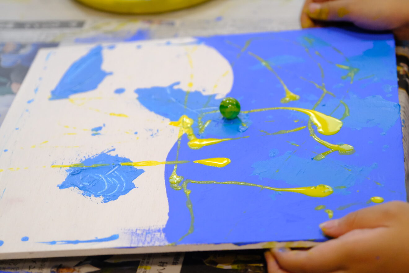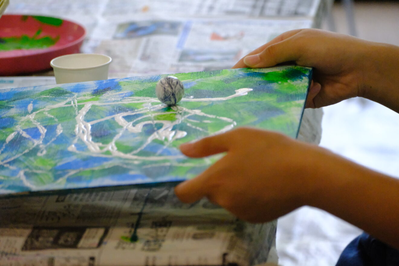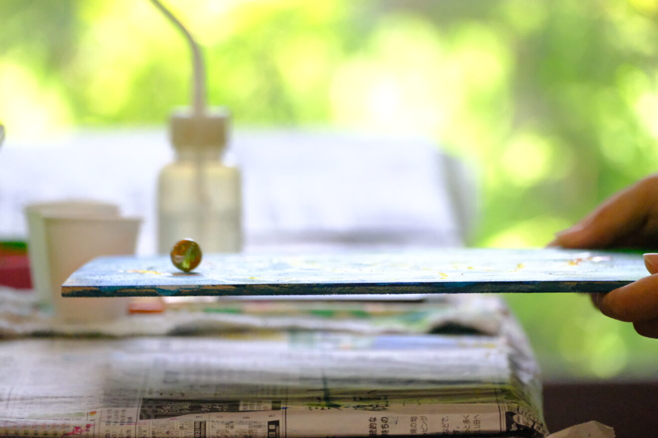 ビー玉を転がして線を描くなど、