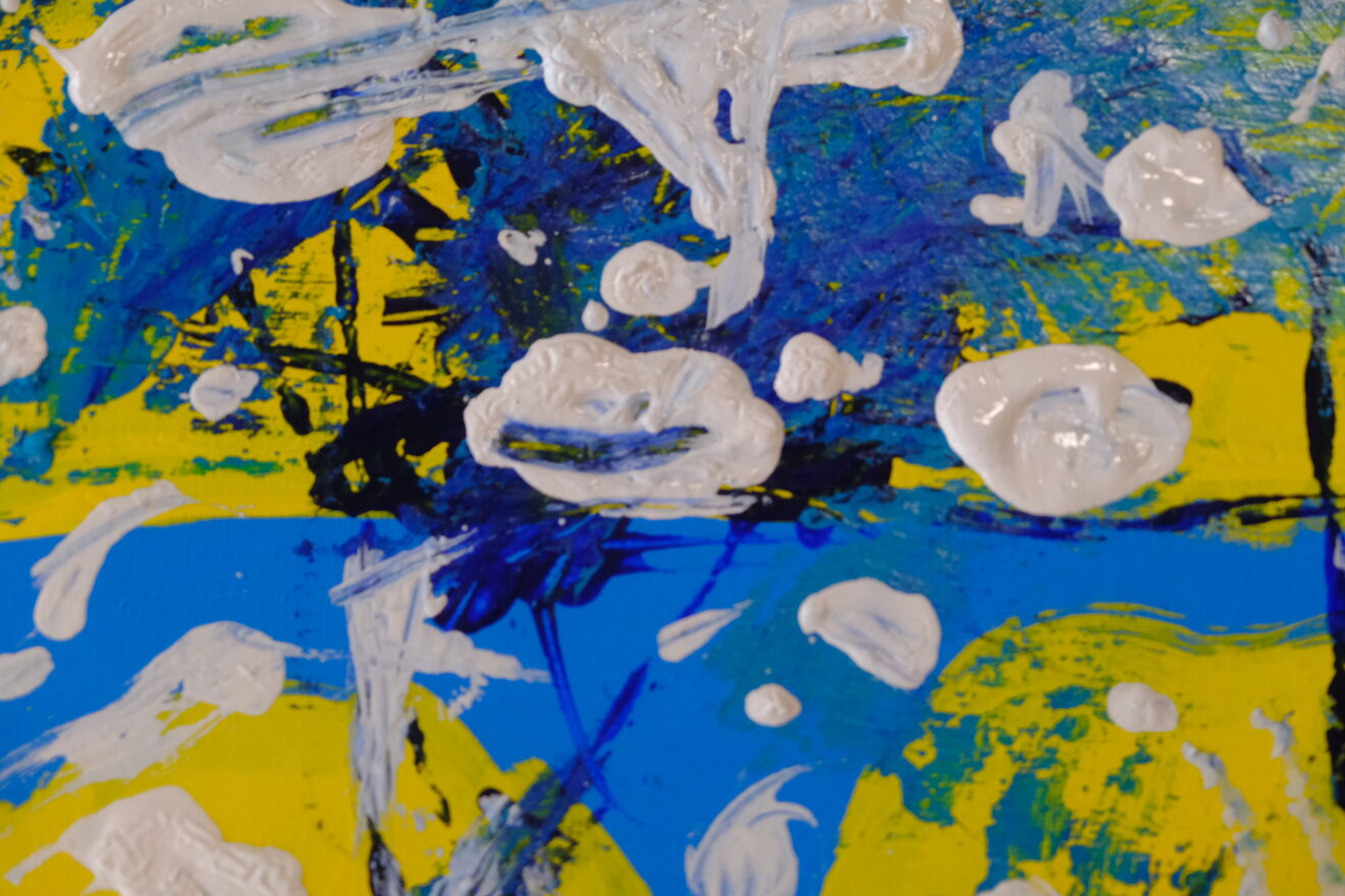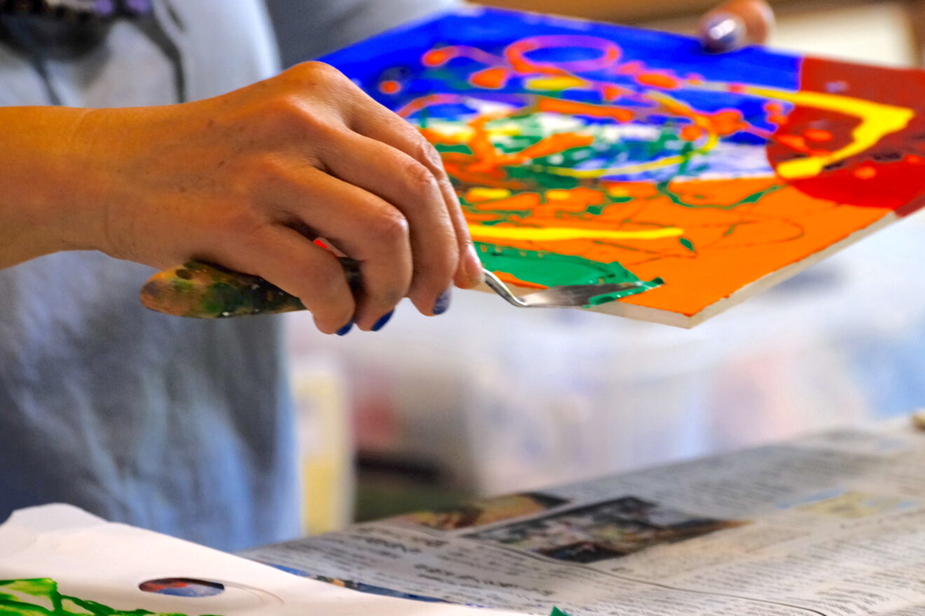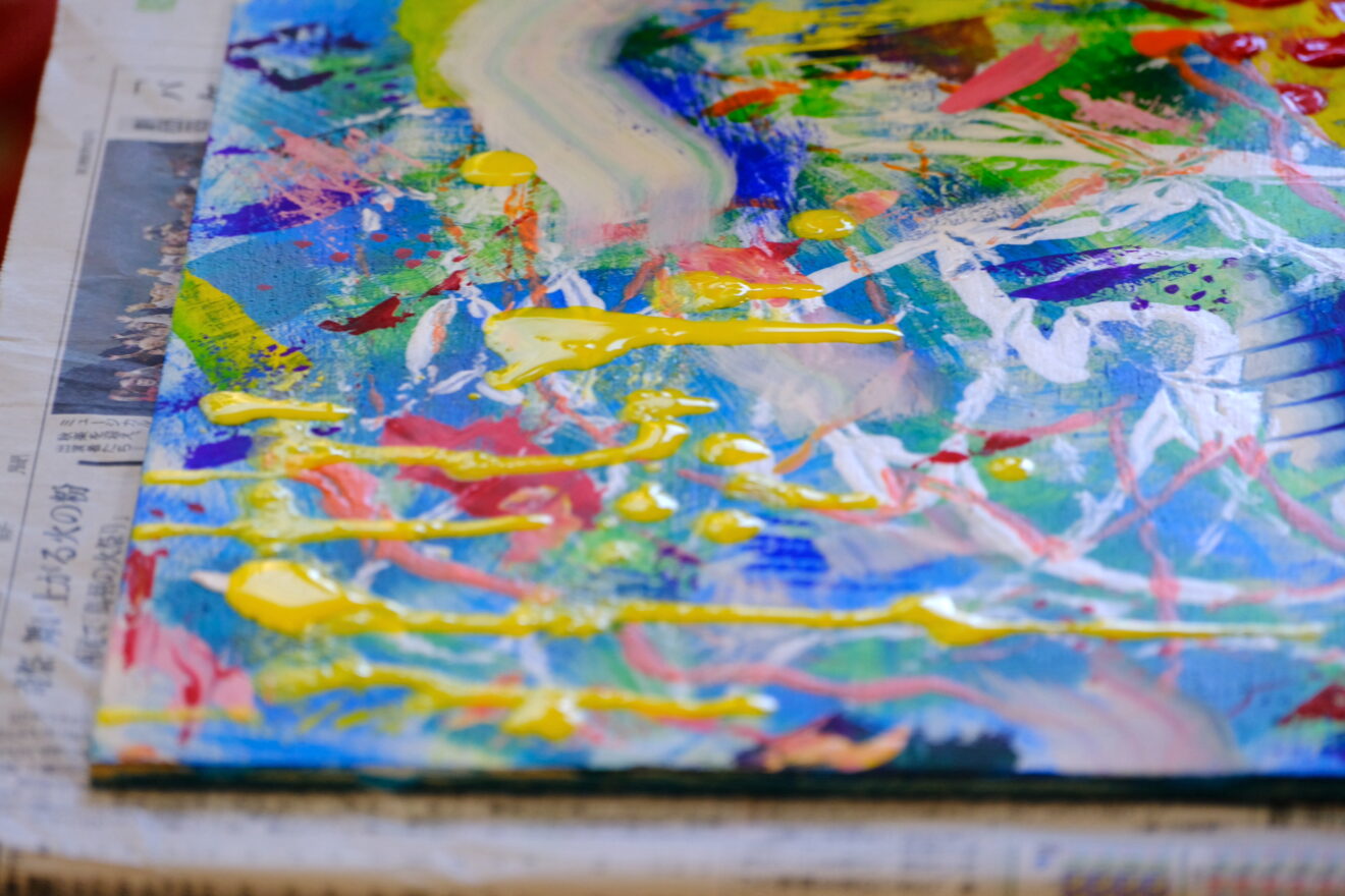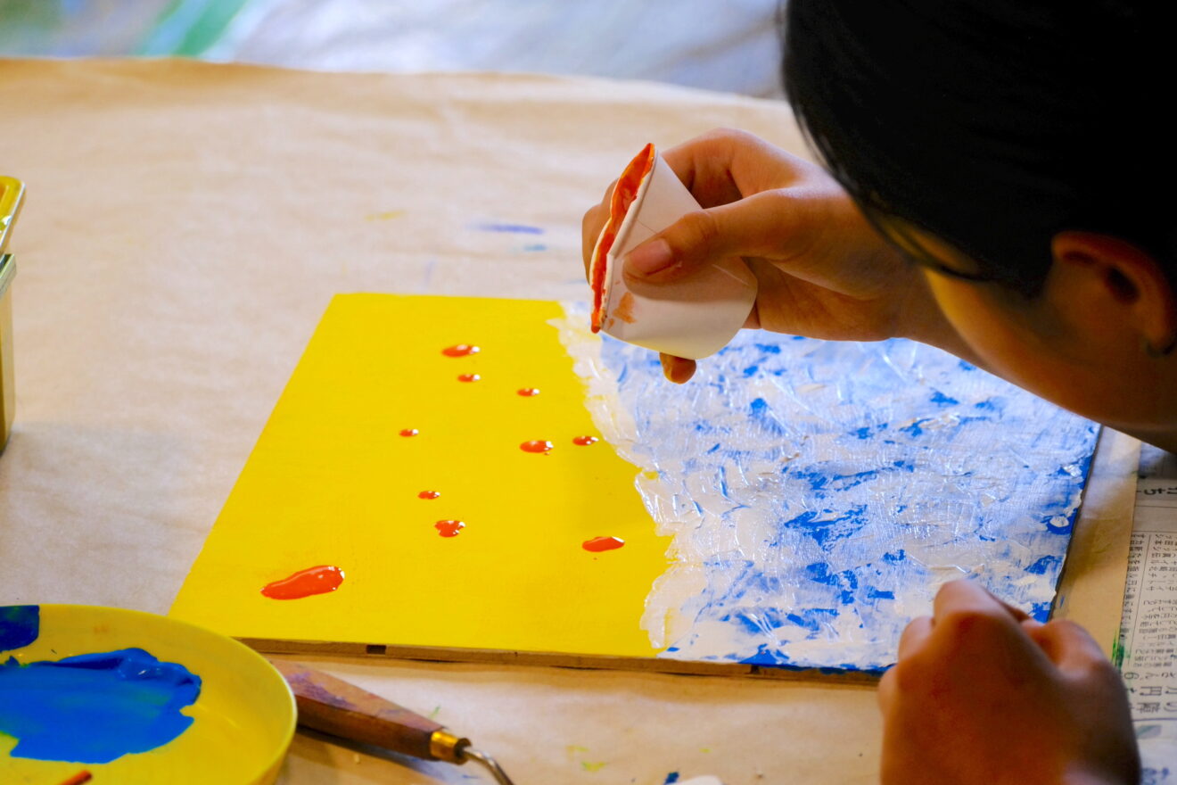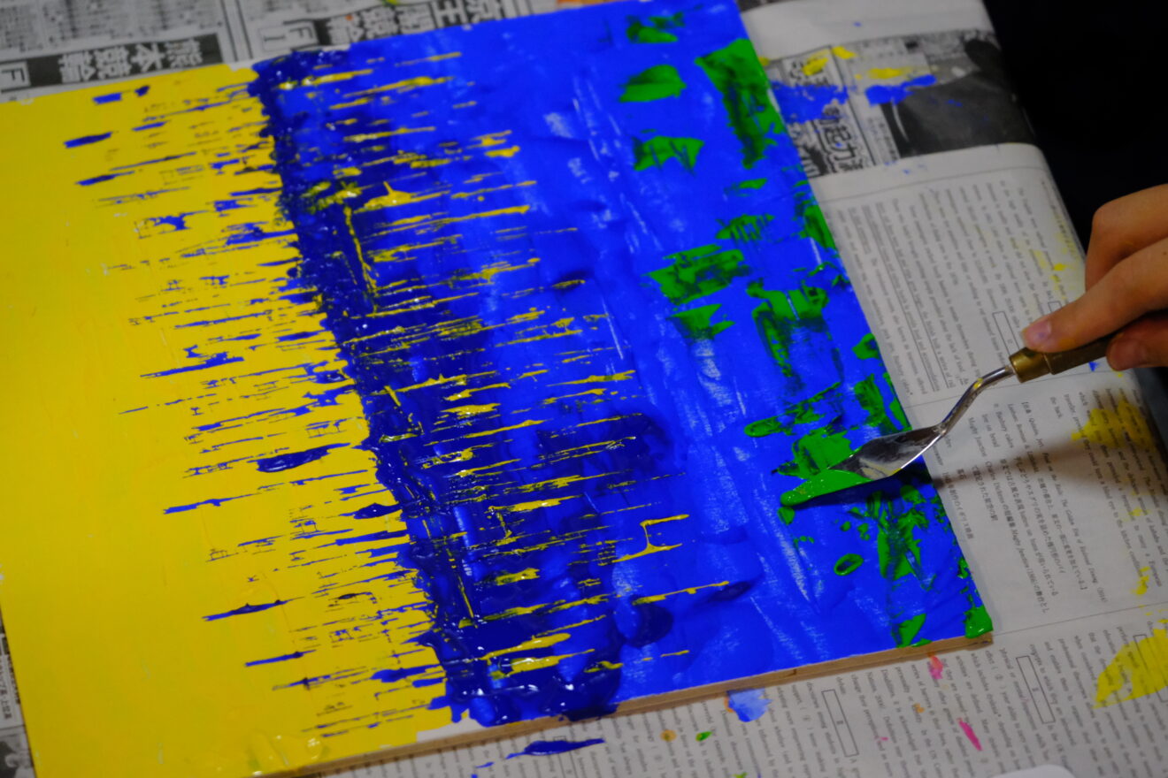 ペインティングナイフで絵の具を盛ったり