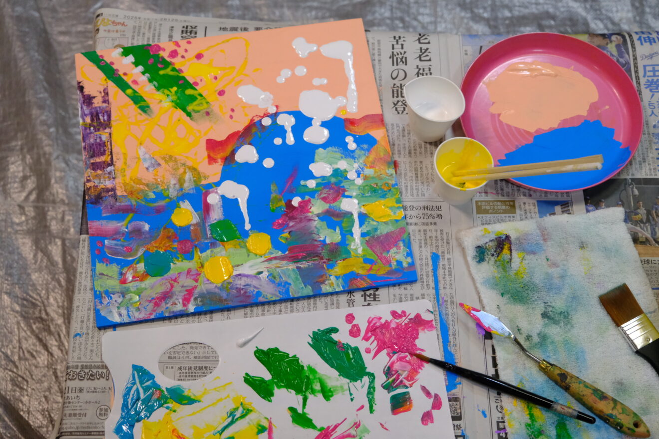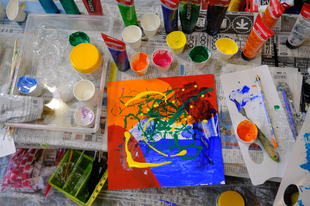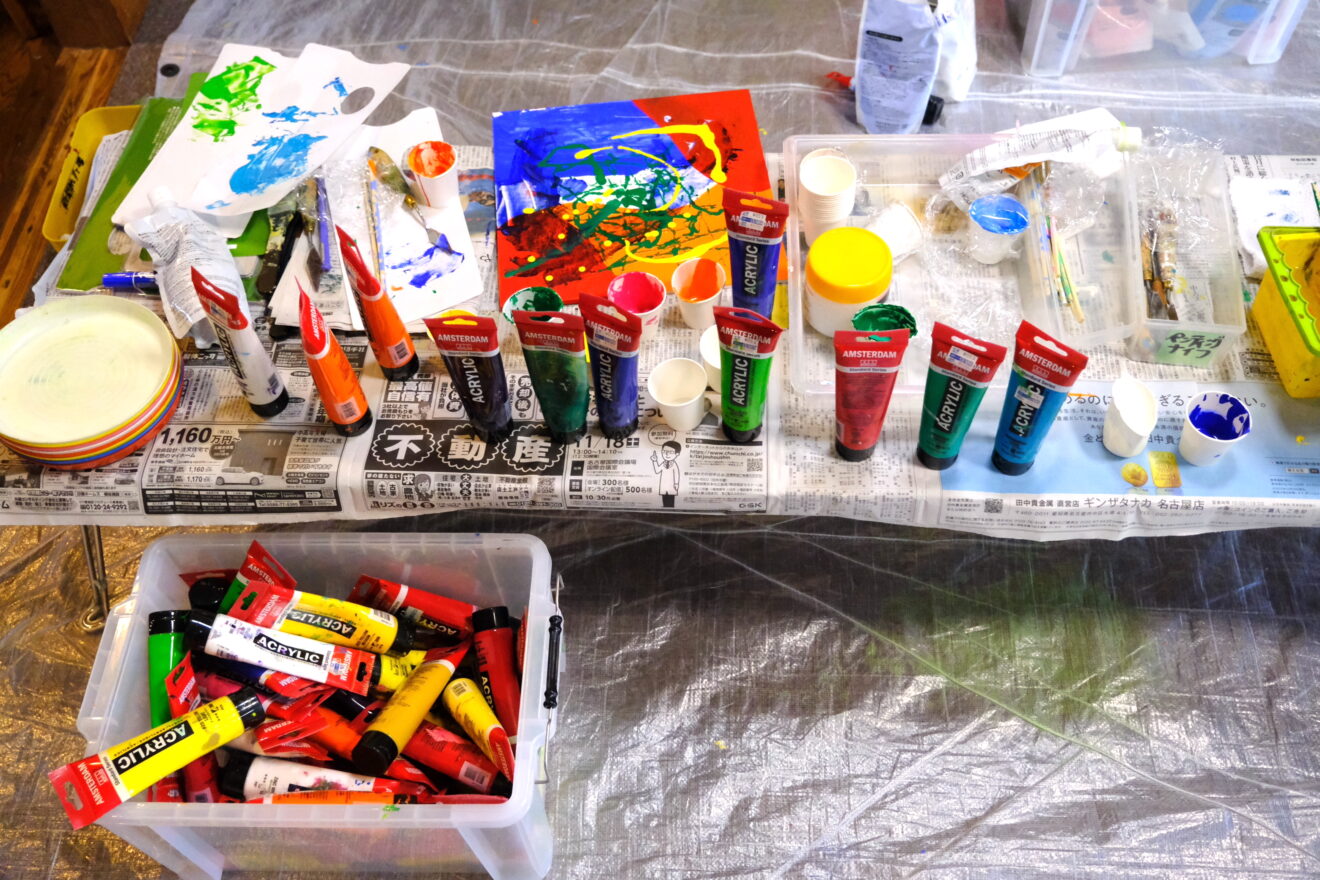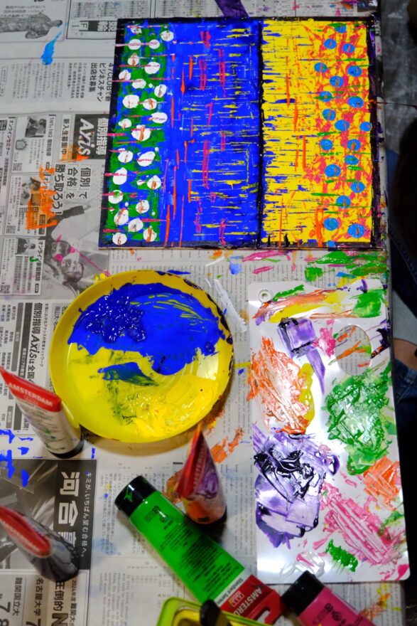 この課題ではアクリル絵具を使って
