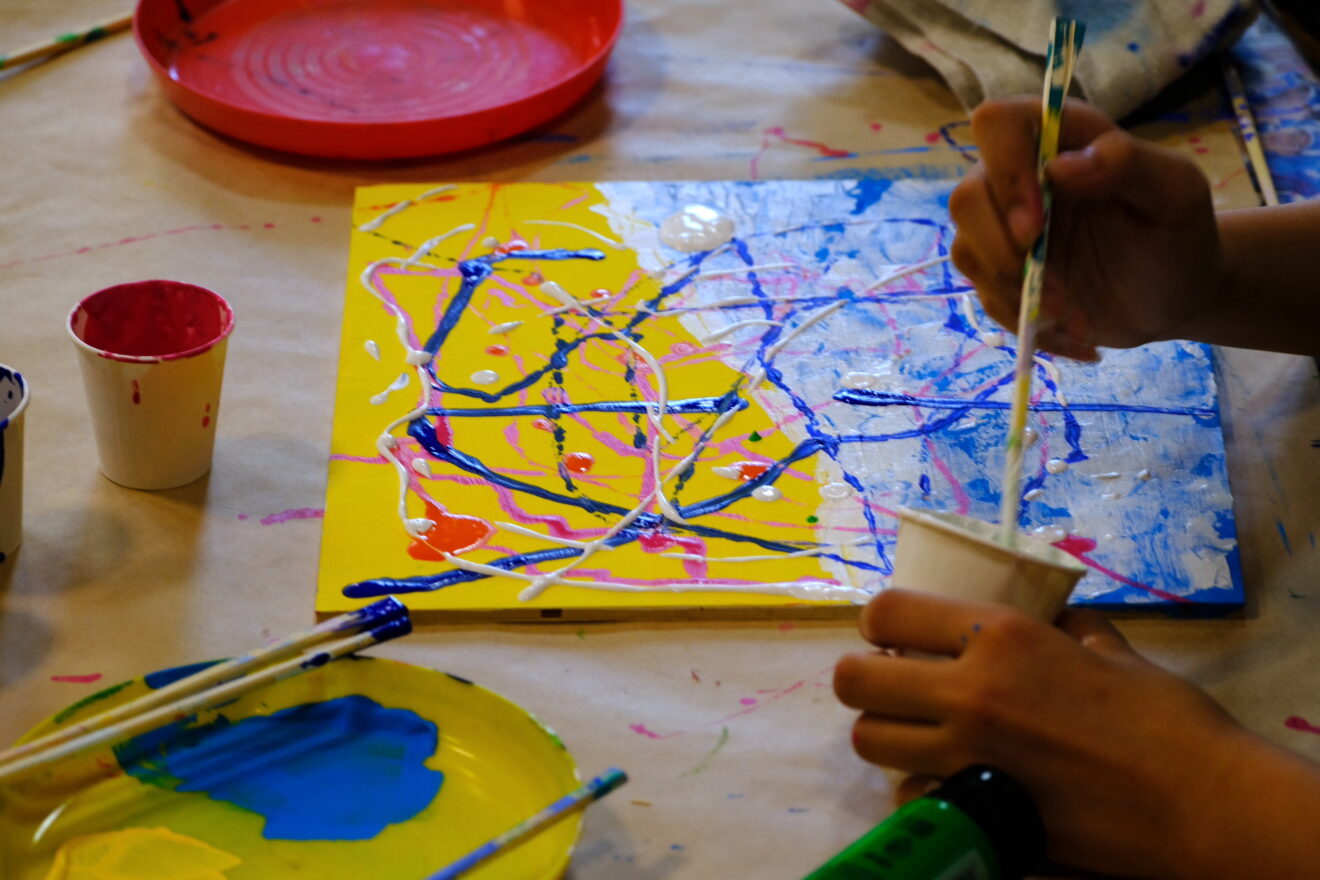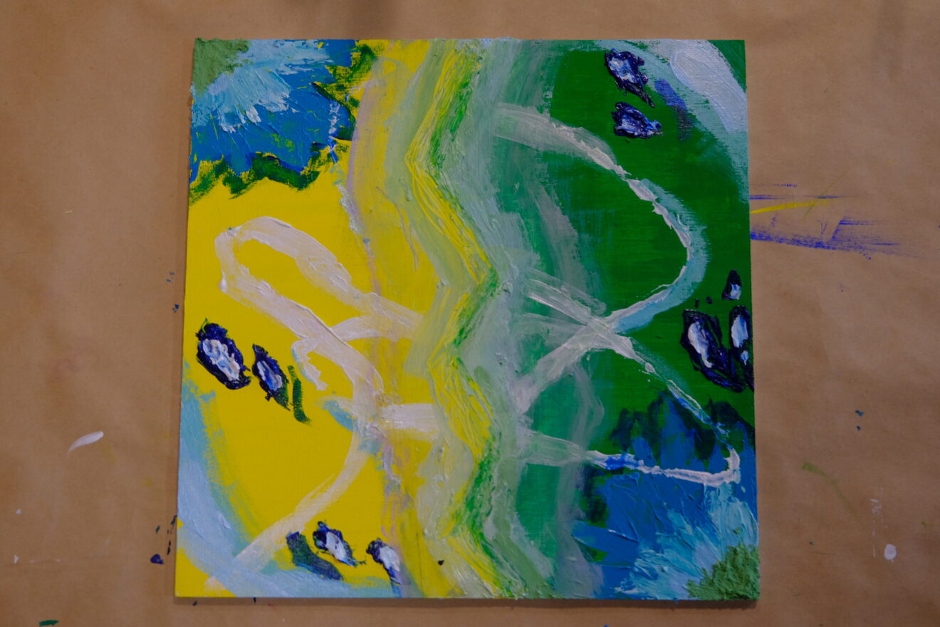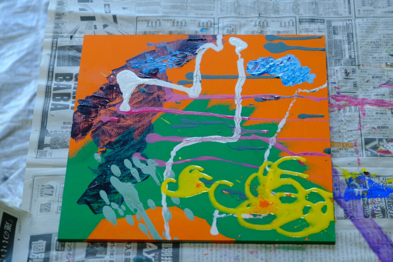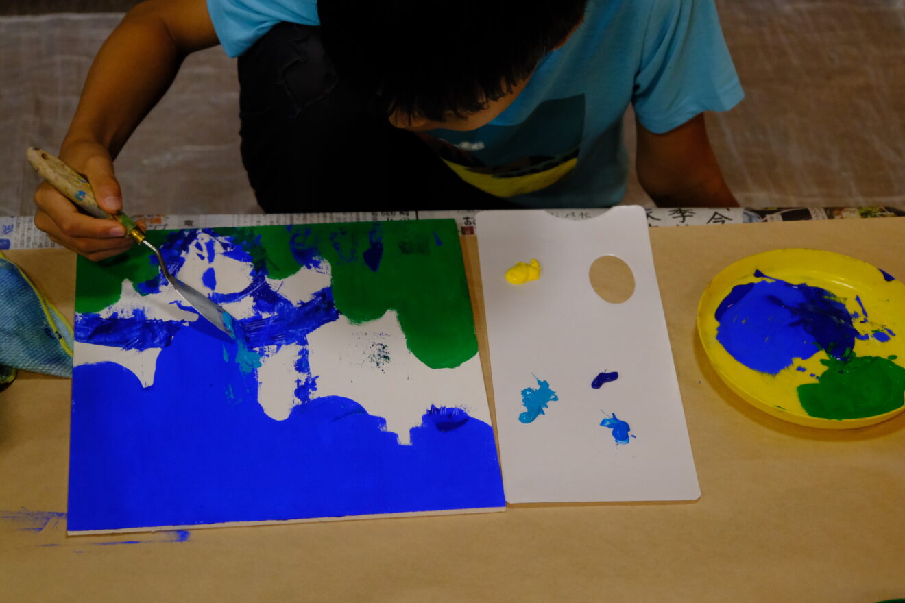 この課題ではアクリル絵具を使って
