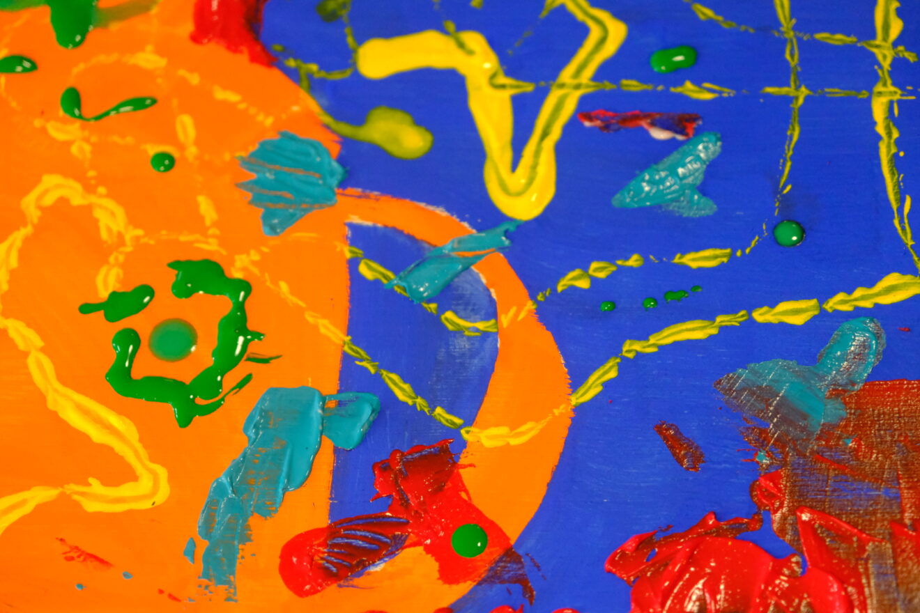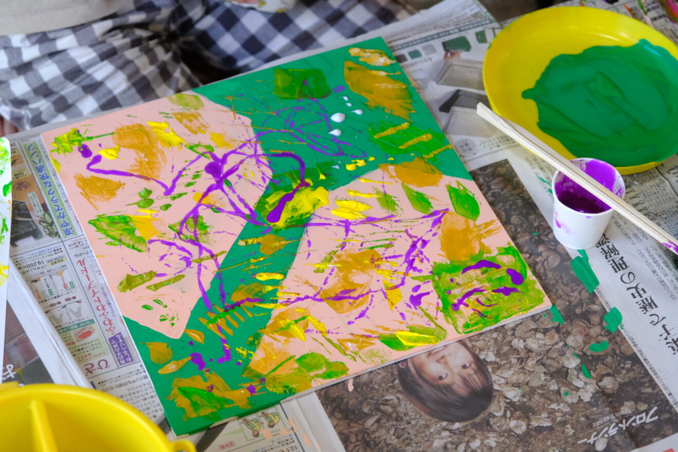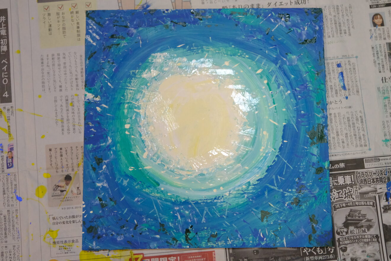 絵の具をたらして絵を描きました。