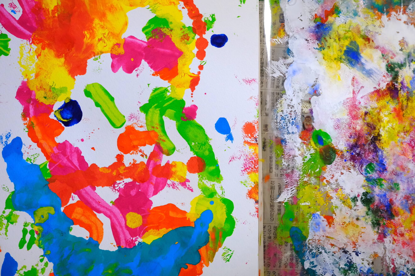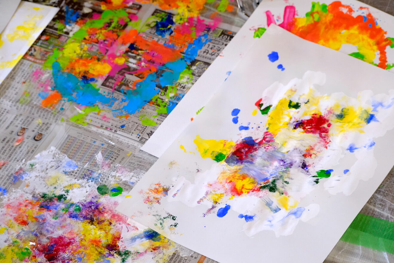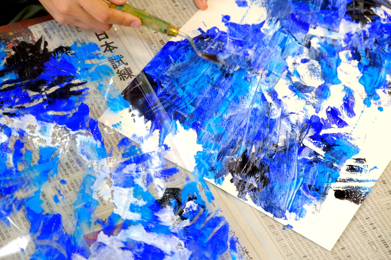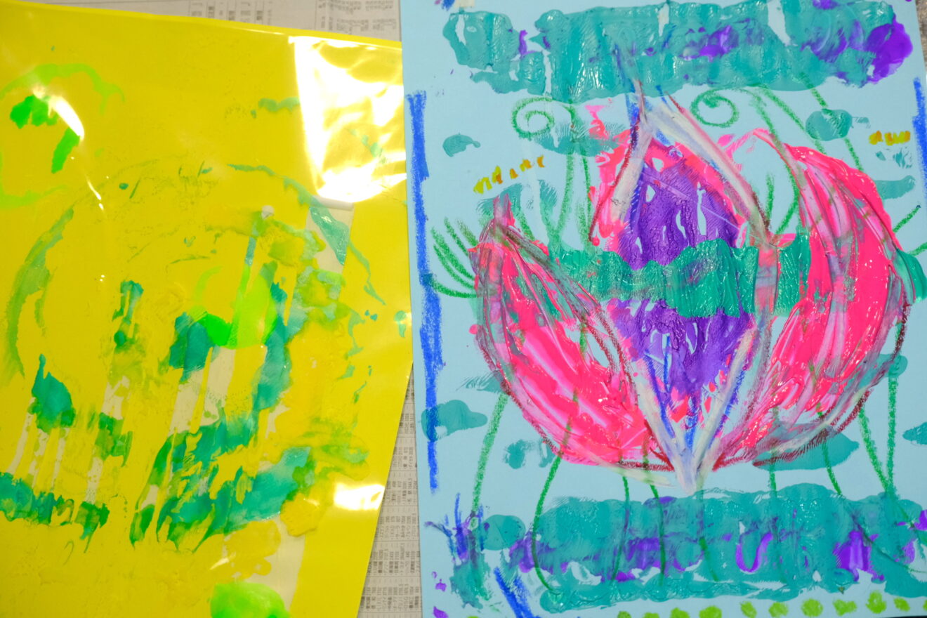 今月のテーマは瀧口修造、加納光於、レオ・レオニ、エリック・カールなどのデカルコマニーやスクラッチ技法にチャレンジ‼️