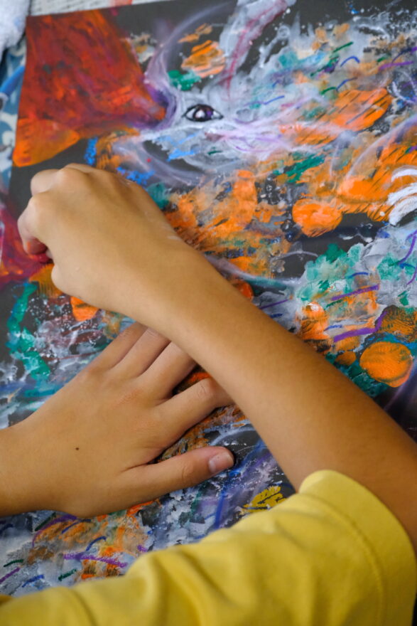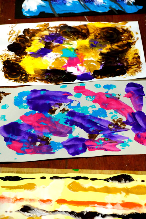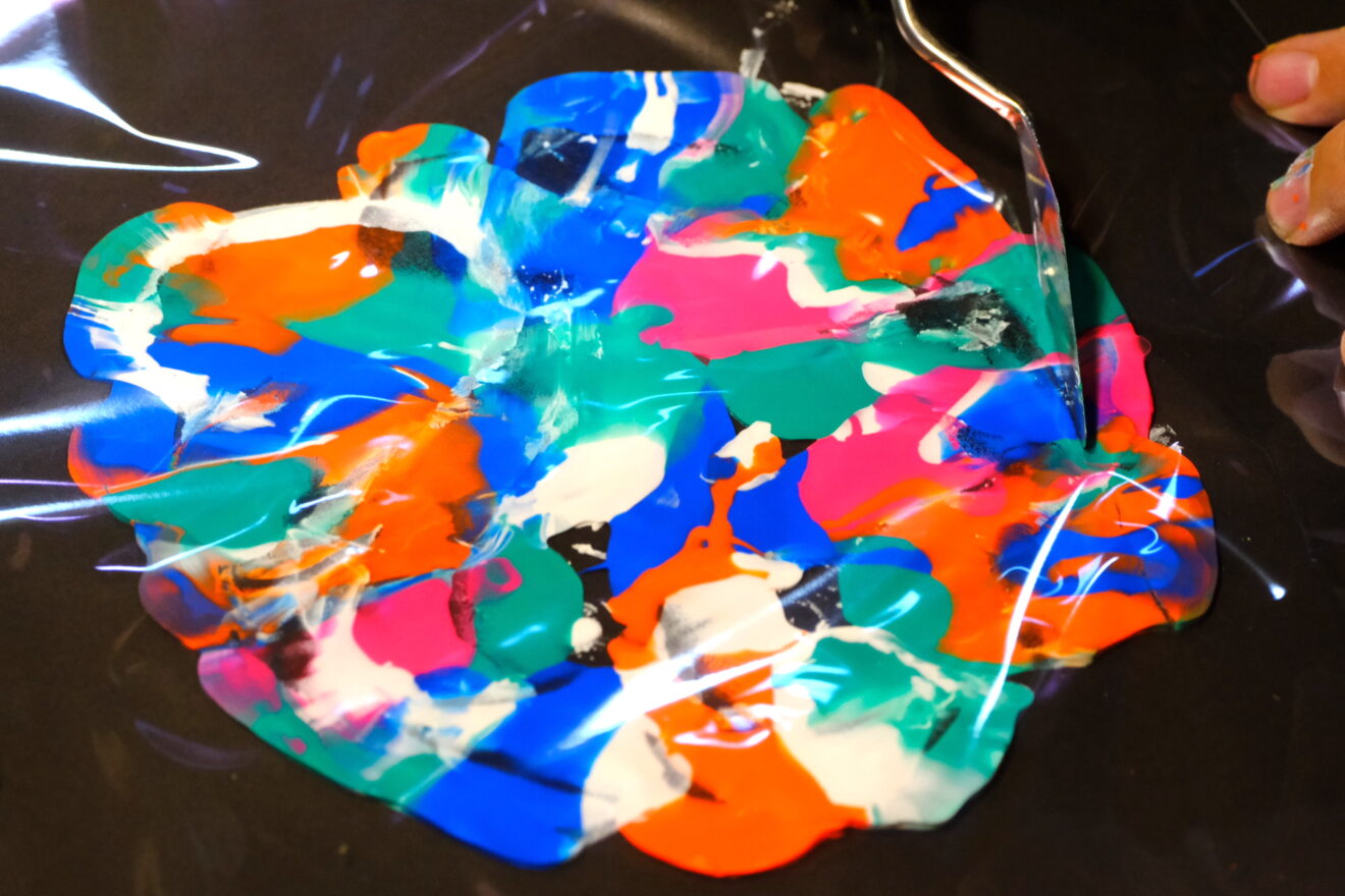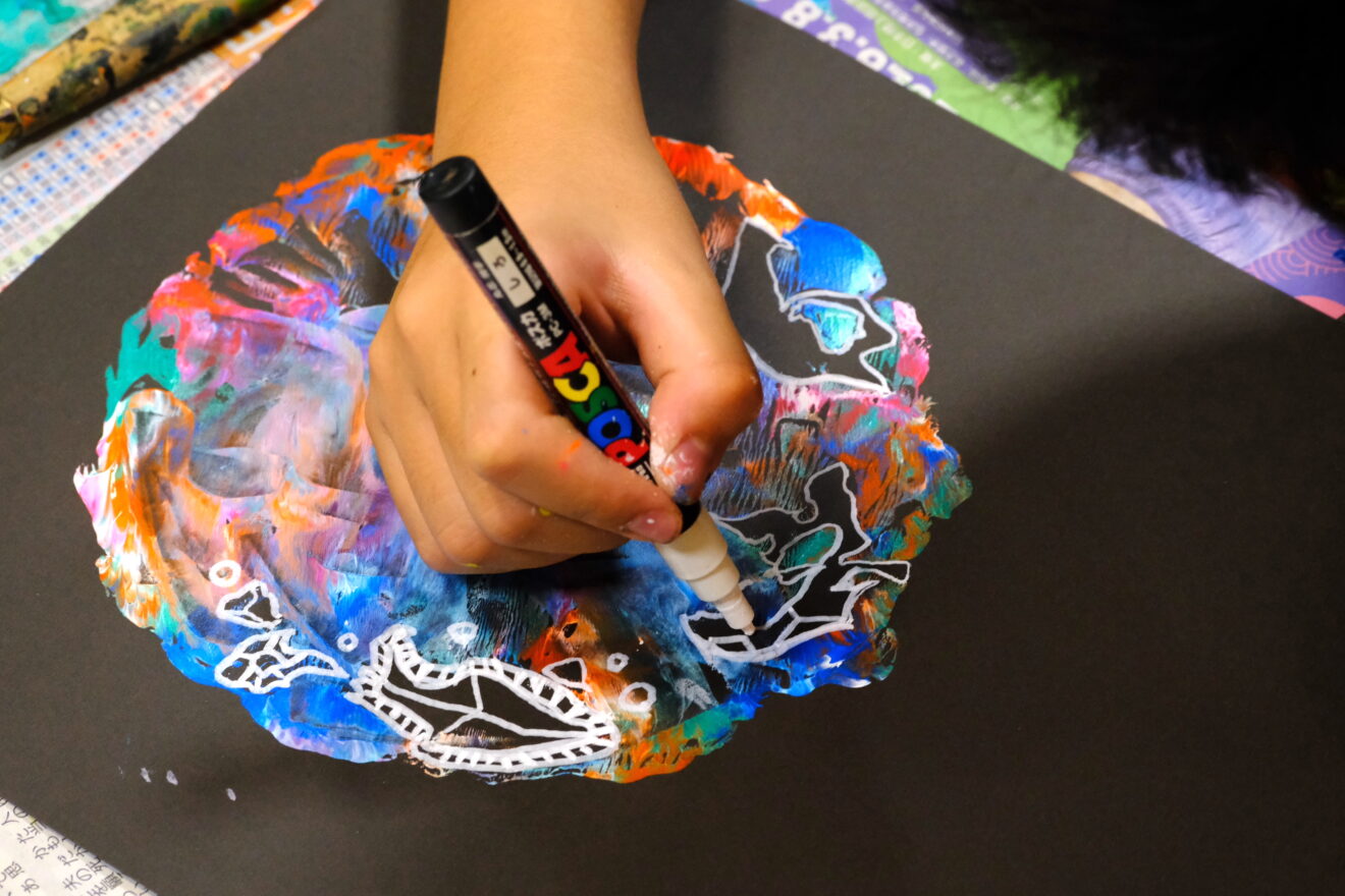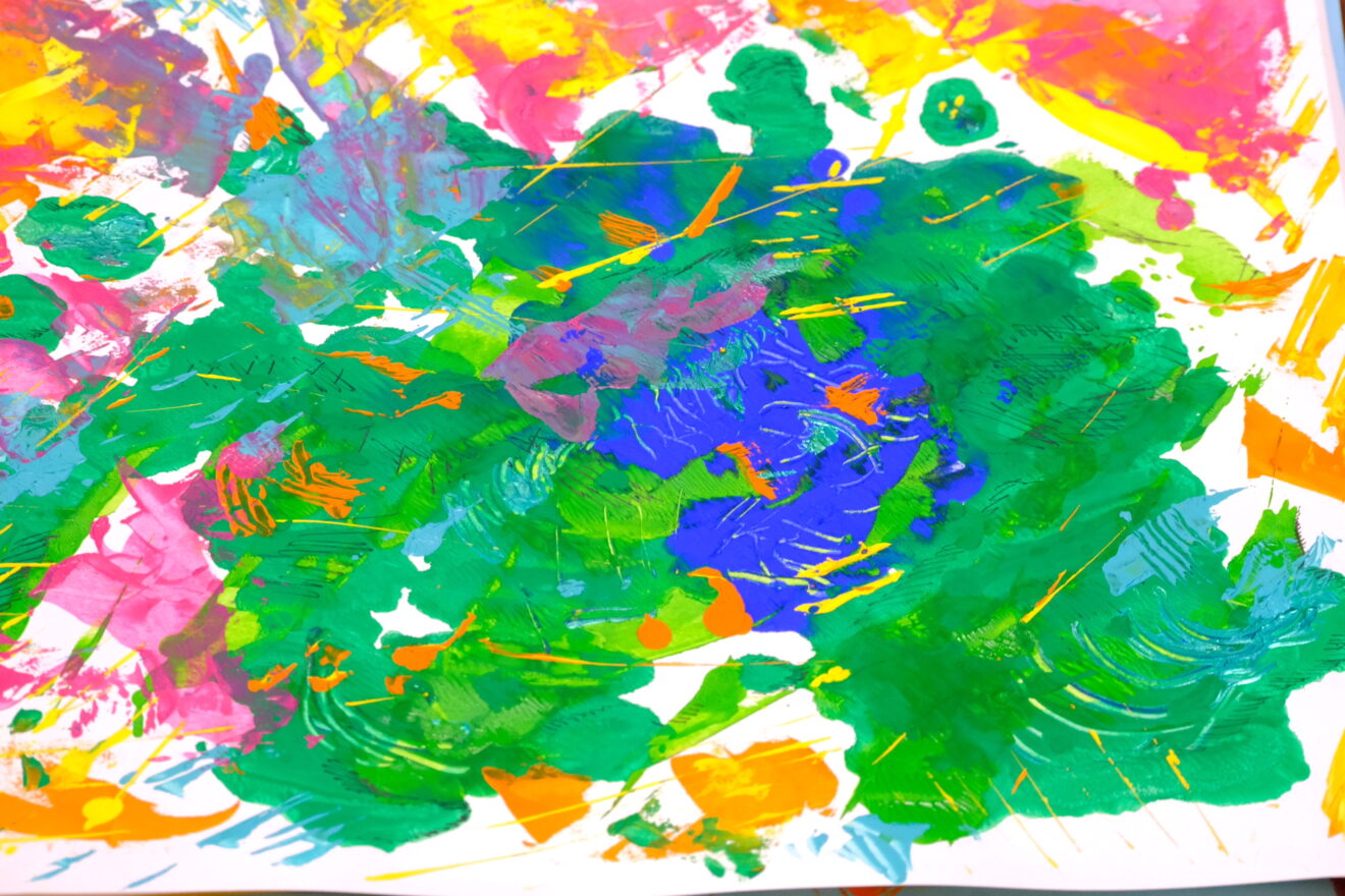 今月のテーマは瀧口修造、加納光於、レオ・レオニ、エリック・カールなどのデカルコマニーやスクラッチ技法にチャレンジ‼️